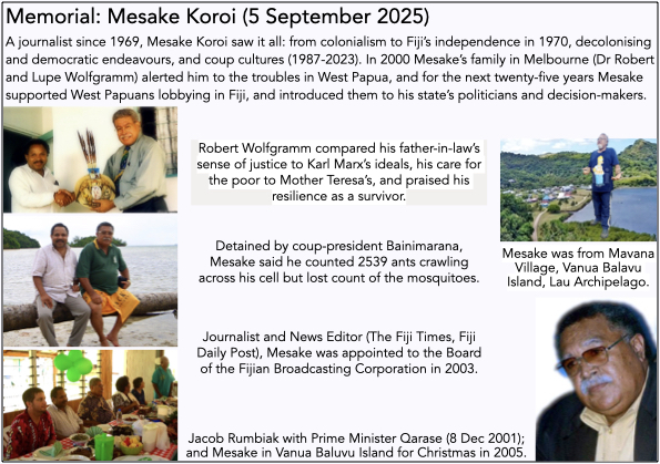 Tribute to Mesake Koroi from Dr Jacob Rumbiak (Minister for Foreign Affairs, ULMWP Government) MESAKE KOROI, 5 September 2025